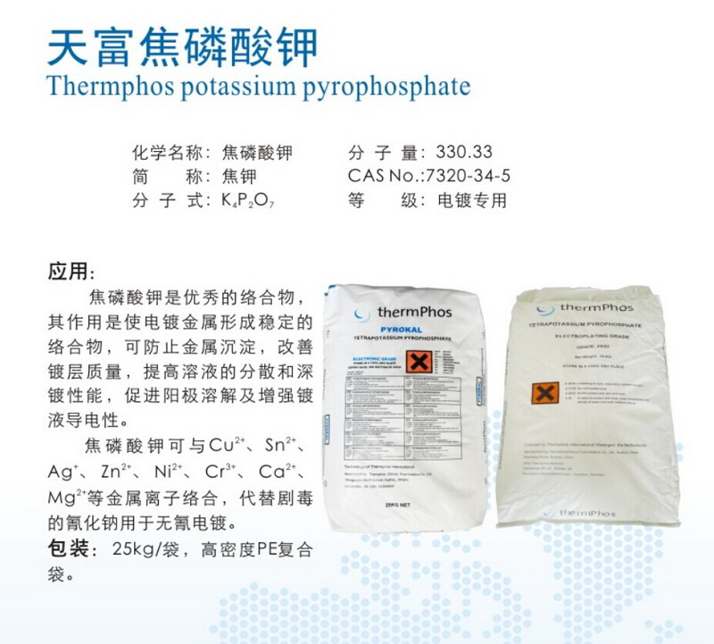 簡介:天富焦磷酸鉀,主要用于焦磷酸鹽鍍銅和錫鎳合金槍色電鍍,品質(zhì)較好,客戶認(rèn)可度高。