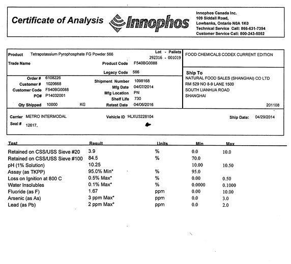 品 牌:美國(guó)穎樂(lè)福食品級(jí)焦磷酸鉀