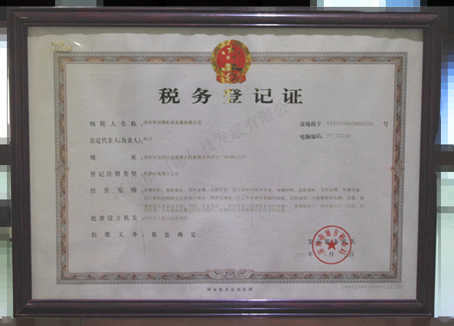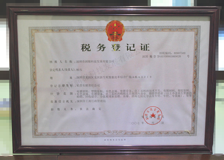 潤錦科技地稅登記證