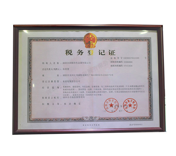 潤錦有色金屬稅務登記...