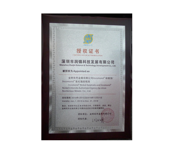 金川2018授權證書